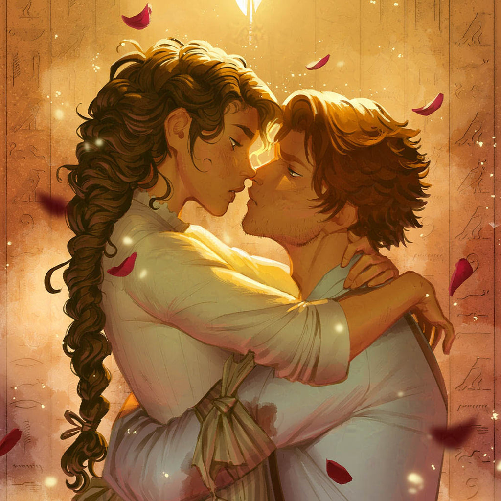 Absolutely adore these two and the abrupt twists and turns in their relationship while they were unraveling the mysteries of Egypt. As a fun Easter Egg, I took the passage from this scene, used a phonetic translator, and drew it as hieroglyphics in the back. Starting from 'Do you always kiss your friends like this?' to when the candle goes out.